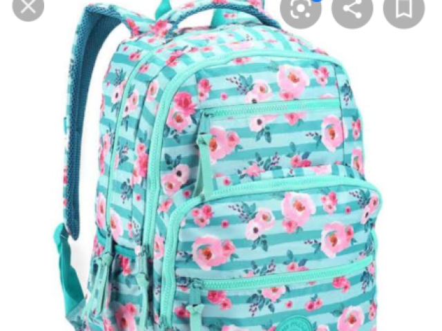 Você ja está atrasada, então pega sua mochila, e ja monta na sua bicicleta. Como eh a sua mochila?