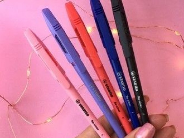 É pós último canetas básicas tipo: preta azul vermelha e verde 😝♥️🖤