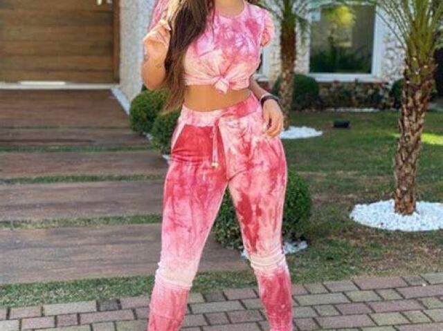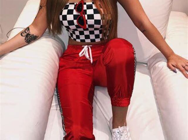 e uma saia curta e uma blusinha com alça